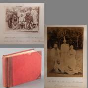 Congo - Album met foto's van de zendelingenpost 'Station Wathen', Ngombe, Lutete. 56 contactafdrukken, 1900-1901. Handgeschreven onderschriften in het Nederlands. Foto's van de zendelingen (o.a. van Regent's Park College), hun huizen en interieur, groepsfoto's van de oorspronkelijke inwoners en hun woningen, half leer, 16 × 23 cm