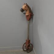 Gepolychromeerd houten stokpaard met wieltjes, 102 cm