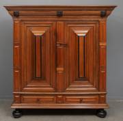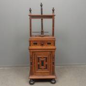 Klein model eiken linnenpers met ebben inlegwerk, renaissance -droogtescheuren, linker voorpoot zit los-, 170 × 63 × 45,5 cm