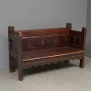 Kastanjehouten tweezits siëstabank met gesneden decor en gecontourneerde voorregel, Spanje, vroeg 18e eeuw, 97 × 158 × 57 cm