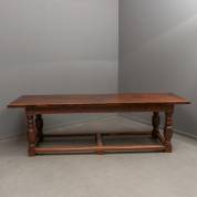 Eiken kloostertafel met gesneden bloemenmotieven en gedraaide poten, 19e eeuw -enkele krassen in blad-, 79 × 260 × 80 cm