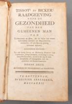 Boek: Tissot's en Bicker's raadgeeving voor de gezondheid van den gemeenen man, van landlieden en allen, die de hulpe van eenen bekwaamen genees- of heelmeester ontbeeren. Dienende tevens tot een nuttig genees- en heelkundig hanboek voor landheeren, dorp-leeraaren ... 3dedruk, vermeerderd en verbeterd. Rotterdam, 1772. XXXII, 752 pp. Leder uit de tijd, rug verguld