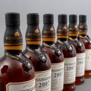Zes flessen rum: Foursquare 12 jaar oud, 2007-2019 -vulniveau's in orde-