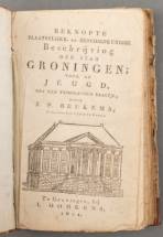 Boek: Stad Groningen - Beukema, J.P., schoolonderwijzer te Leens. Beknopte plaatselijke- en geschiedkundige beschrijvinge der stad Groningen; voor de jeugd. Groningen, J. Oomkens, 1821. VIII, 156 pp. Kl.8vo. Half leer uit de tijd. Met gevouwen stadsplattegrond -ietwat sleets boekje-