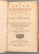 Boek: Marini, G.A. (1569-1622). De Prins van Endimiro; of (tweede deel van) Kalloandro's, zynde enn werk van byzondere vinding, en vol-geestige aardigheid. (Vert. door S. de Vries). Tweede druk. In beter Nederduits gebragt. Amsterdam, 1714. 538 blz. Kl. 8vo. Perkament. Met 6 platen door I. Lamsvelt -gebruind-