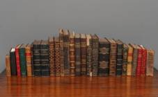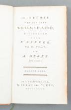 Acht delen: Bekker, wed. Wolff, E. en A. Deken. Historie van den Heer Willem Leevend. 's Gravenhage, I. van Cleef, 1784-1785. 8 delen. Gespikkeld kalfsleer, rug verguld, rode en groene rugschildjes. Eerste druk