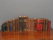 Antiquarische boeken met decoratieve banden, circa 1 meter -defecten-