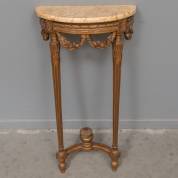 Wandtafeltje met marmeren blad, guirlandes onder het blad, en gecanneleerde poten, Louis Seize-stijl, tweede helft 19e/20e eeuw -één guirlande en marmeren blad gelijmd-, 83 × 47 × 24 cm
