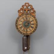 Wandklok met kuhschwanzpendel en beschilderde metalen wijzerplaat, Duitsland, 18e eeuw, hoogte wijzerplaat 32 cm