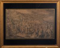 Nicolaas de Bruyn (1571-1656), de kruisiging van Christus, kopergravure, 1610 -gebruind, enkele kleine scheurtjes-, 43 × 69 cm
