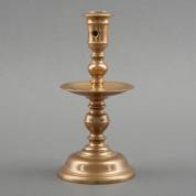 Messing 'Heemskerck' schijfkandelaar, 17e eeuw, 21 × Ø 10 cm