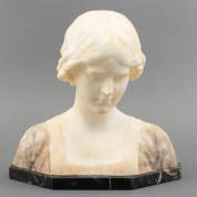 Carl Theodor Wegener (1862-1935), buste van een jonge vrouw, albast en zwart marmer, verso gesigneerd, 30,5 × 32,5 × 17 cm
