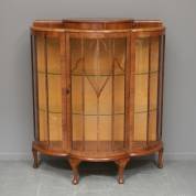 Notengefineerde vitrinekast met gebogen front, Engeland, circa 1930 -stukje fineerverlies op de deur, krasjes-, 123 × 105 × 38
