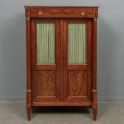 Mahoniegefineerd boekenkastje met beglaasde deurtjes, Nederland, empire -stukje plint rechtsonder los maar aanwezig, plakbandrest op linker ruitje-, 151 × 96 × 43 cm