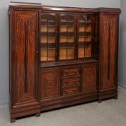 Coromandel buffetkast, deel massief hout, deels gefineerd, art deco, verkoopadres: Phoenix Meubelen, Damrak 76, Amsterdam, jaren '20, de kast bestaat uit twee hoge kasten met legplanken, het middendeel met drie vitrinedeurtjes met roedeverdeling, de onderkast met drie lades en twee deurtjes, sleutels gemerkt Phoenix Amsterdam -krimpscheuren-, 180 × 200 × 48 cm