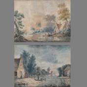 Omgeving Nicolas Wicart (1748-1815), twee werken, riviergezichten, aquarel op papier, niet gesigneerd -licht gebruind, beetje slijtage aan papier-, 25 × 33 cm