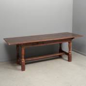 Rechthoekige eiken tafel met lade, staande op flespoten, verbonden door regel, 18e eeuw -gebruikssporen, poten verhoogd-, 76 × 212 × 78 cm