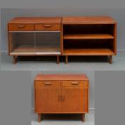 Lage teakgefineerde wandkast bestaand uit drie losse elementen, jaren '60, ieder element 74 × 88 × 46 cm
