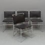 Vier verchroomd stalen stoelen met zwart lederen zittingen, model Roquebrune, ontwerp Eileen Gray -gebruikssporen- 77 × 45 × 48 cm
