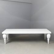 Hoogglans witgelakte tafel met balustervormige poten, modern, 76 × 290 × 100 cm