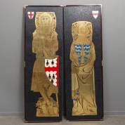 Paar gepolychromeerde en vergulde houten reliëfpanelen: Lady Joan de Badlesmere en Sir John de Northwode, met familiewapen Norwood, naar 16e-eeuwse bronzen voorbeelden in de Minster Church op The Isle of Sheppey, elk 194 × 62,5 cm inclusief lijst