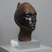 Jef van Tuerenhout (1926-2006), vrouw met helm, deels gepatineerd brons 3/8, gesigneerd, 46 × 19 × 35 cm, daarbij: los plexiglazen basement