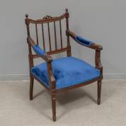 Beukenhouten fauteuil met blauw velours, Louis Seize-stijl, 87 × 60 × 47 cm