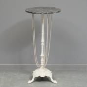 Witgelakte gietijzeren guéridon met zwart marmeren blad, 78 × Ø 37 cm
