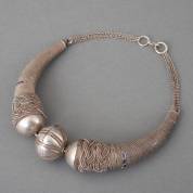 1e gehalte zilveren etnisch halssieraad, India/Centraal-Azië, gewicht 251 gram, 20 cm