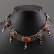 BWZG collier bestaande uit vier gevlochten kettingen gezet met carneool, Bedoeïenen, Saoedi-Arabië, eerste helft 20e eeuw -enkele chipjes en gebruikssporen-, lengte 44 cm
