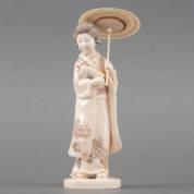 Japanse olifantsivoren okimono: vrouw met parasol, Meiji-periode, op onderzijde gesigneerd -parasol los, CITES EU-certificaat bijgevoegd, geen uitvoer buiten de EU-, 18 × 7 × 5 cm