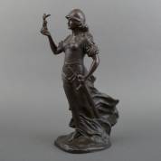 Bronzen beeld: Athene met Nikè in haar hand, gesigneerd L. Ridel, hoogte 41 cm