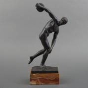 Julius Paul Schmidt-Felling (1835-1920), 'Diskobolos', naar Grieks voorbeeld van Myron van Eleutherae, gesigneerd, op marmeren basement -wat beweging in voet-, hoogte inclusief basement 35 cm