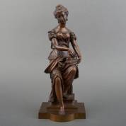 Bronzen beeld: Pandora met doos, gepatineerd, gesigneerd J. Pény, 19e eeuw -twee gaatjes in achterzijde-, 34 x 14 x 13 cm