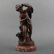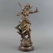 Naar Louis Moreau: 'Nymphe des bois', brons, niet gesigneerd, op metalen voet met naamplaatje, hoogte inclusief voet 41 cm