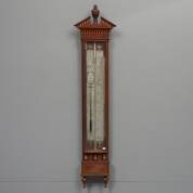 Bakbarometer met timpaankap, geblokte biezen en tinnen schaalplaten, adres: J. Stoppani & Zoon, Amsterdam, circa 1800, lengte 125 cm