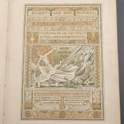Boek: Derkinderen - Berlage - Vondel. Gysbreght van Aemstel. Muziek van B. Zweers (en A. Diepenbrock), Toneeldecoratie van H.P. Berlage, boekversiering van A.J. Derkinderen. Haarlem, Erven F. Bohn, 1893. Groot 4to. Kalfslederen band uit de tijd, sneden verguld. Vroege Jugendstilpublicatie verschenen in 20 afleveringen tussen 1894 en 1903; de boekversiering (versierde initialen, orrnamentwerk als sierbalken) en 25 illustraties in kleurenlithografie, deels in goud en zilver door Derkinderen. Het toneeldecor in 7 platen door H.P. Berlage; muzieknotatie over 122 pp. met boekversiering met zwart/wit illustraties -vlekken op voorzijde van de band, hoeken en rugeinden geschaafd-, 43 × 33 cm