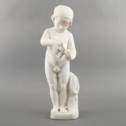 Marmeren beeld: kind met vogel, kopie naar een Romeins beeld welke op zijn beurt is gemaakt naar het Hellenistische origineel, geomonogrammeerd aan onderzijde 'TF' aaneen, 19e/begin 20e eeuw, 56 × 19 × 18 cm, daarbij: plexiglas vitrine met spiegelachterwand -krassen-, 63 × 42 × 24 cm