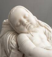 Joseph Jacques Ducaju (1823-1891), portret van een kind, wit marmer op rood natuurstenen basement, gesigneerd, 32 × 79 × 42,5 cm