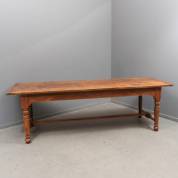 Lange rechthoekige eiken tafel met gedraaide poten verbonden door regels, 19e eeuw -sporen van gebruik en ouderdom-, 78,5 × 250,5 × 80,5 cm