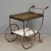 Messing serveertrolley met twee losse geperforeerde bladen waarvan één witgelakt, ontwerp Josef Frank, uitvoering Svenskt Tenn, jaren '50 -een moertje van een poot ontbreekt, gebruikssporen-, 76 × 85 × 50 cm