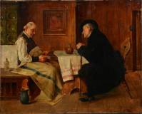Hans Kratzer (1874-1927), twee mannen in een herberg, olieverf op paneel, r.o. gesigneerd en gedateerd 1922 -krasjes-, 38 × 46,5 cm