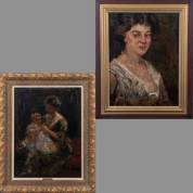 Simon Maris (1873-1935), twee werken geschilderd aan weerszijden van één metalen paneel: moeder met kind, en een vrouwenportret, beide olieverf op vermoedelijk koper, het vrouwenportret l.o. met onduidelijke titel en signatuur, 55 × 40 cm