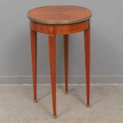 Bijzettafeltje met stervormig inlegwerk in diverse houtsoorten -marriage met de poot-, 62 × Ø 55,5 cm