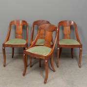Vier mahonie stoelen met groene velours bekleding, Frankrijk, 19e eeuw -restauraties, zittingen wat sleets-