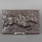 René Paris (1881-1970), plaquette met jockey te paard, gepatineerd brons, gesigneerd, 23,5 × 37 cm