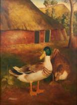 Henri van de Velde (1896-1969), eendenpaar op boerenerf, olieverf op paneel. l.o. gesigneerd, 64,5 × 48 cm