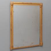 Spiegel in verguld houten lijst met twee leeuwenkopjes -lijst fragiel en beschadigd-, 96 × 67 cm