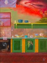 Melle Oldeboerrigter (1908-1976), 'Keukentje', olieverf op doek, r.o. gesigneerd en gedateerd '72 -volgrecht van toepassing-, 39,5 × 29 cm, deel van de overzichtstentoonstelling in 1999 in Museum De Buitenplaats te Eelde