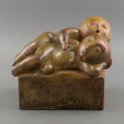 Odile Kinart (1945), de minnaars, gepatineerd brons EA 3/3, verso gemonogrammeerd en met opschrift 'Memento mori, bemin totdat de avondwind de laatste purperen rozen vindt', tekst van Hendrik Marsman, 2010 -volgrecht van toepassing-, 28 × 34 × 23 cm, daarbij: los plexiglazen basement
